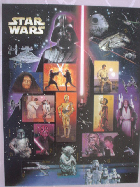 スターウォーズの切手、 5月の初旬に郵便局に行ったら 発売になるって書いてあったのを思い出し、 お手紙を出すついでに、 買っちゃいました。 だから、どうだ、って事も無いのだけど なんとなく・・・。