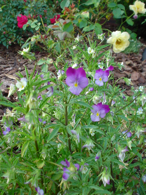 いろいろな色のビオラが勝手に生えてます。