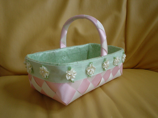 バスケットの白とピンクの格子が