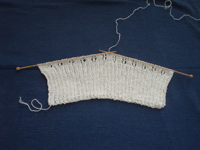 外は暑いし、時々、ゴロゴロと雷様が出現し こんな天気の季節は家でのんびりと 編み物に嵌るのも、楽しいです。 今度は前身ごろを編み始めました。 週末からは原稿書きに入る予定なので 当分、お預けです。 って、きっと、休憩とか言っては チクチクと編んでると思います。 やりかけの編み物、お預けは・・・つらい!。 でも、我慢しなくっちゃね。