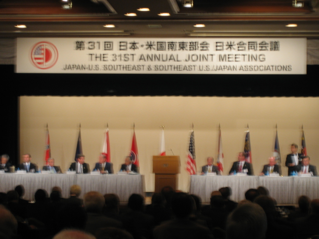 今日は会議の二日目。 殆どの参加者が帝国ホテルに宿泊。 でも、私は実家が近くなので 家で朝食を取ってのんびり出かけました。 ボケてるけど、州知事さんたちです。 今日は全ての知事がそれぞれの州の紹介と 日本側のスピーチなどがあり、 お昼の後には、同時進行でいろいろなセッションが行われ 好きなのを選んで参加できる。 勿論、お昼は帝国ホテルでコース料理。 美味でした。 セッションではテネシー州州知事の出ているのに参加。 貿易の話や経済について お偉いさんはやっぱり頭が良いから 話も面白く、良い経験になりました。