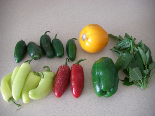 ハラピーニョ、オレンジ色のトマト、バジル