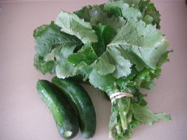 きゅうり、 チューニップグリーン(蕪の葉)