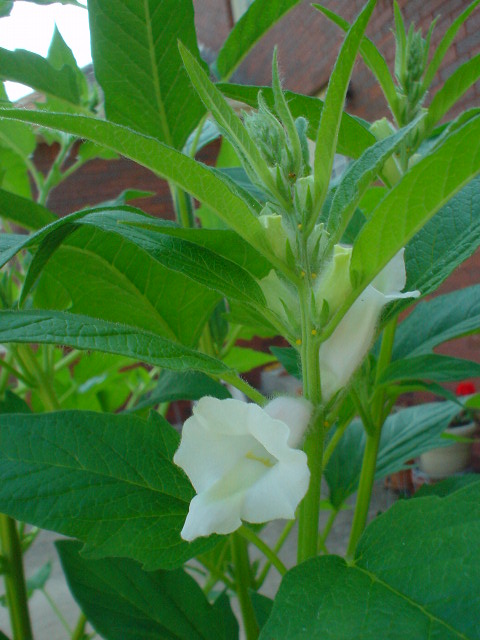 今年の春に菜園に植えた胡麻。 実は、胡麻の花も葉も見たことがなかったの。 でも、胡麻の種を手にいれたので 面白半分、興味半分に育てたら・・・。 こんなに大きくなりました。 私の背くらいあるよ。 こちらは胡麻の花。 花が終わると、穂の中に種が出来てそう。 でも、収穫はいつ頃すれば良いのだろう? こぼれ種になる前に収穫しなくちゃね。 炒ってキンピラにでもかけたいな。 どうなる事やら・・・後ご期待!なんてね。