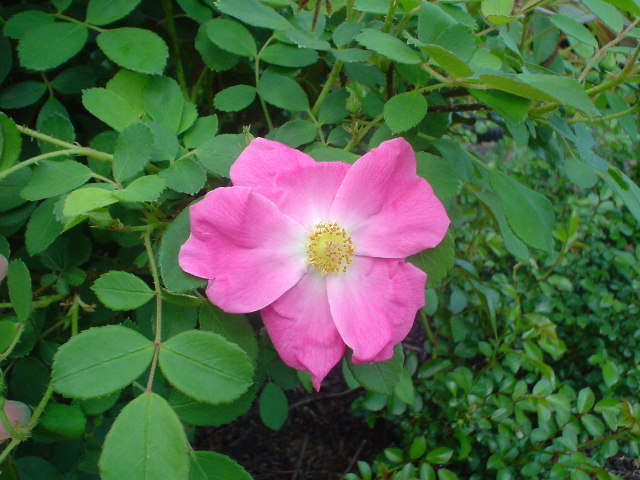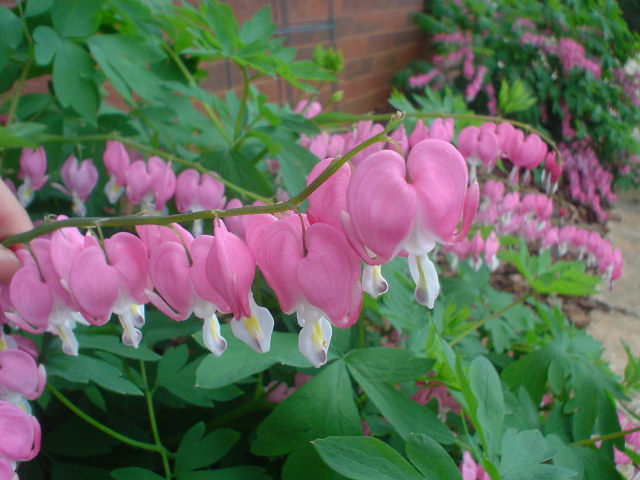 お庭に数本、植えてある薔薇、 今年初めて、そのうちの1つが開花しました。 こちらは ケマンソウです。 英語名は Bleeding Heart。 ハートの形をしたピンクの花びらが 割れて、白い部分が、きっと 血が流れている様に見えるから?