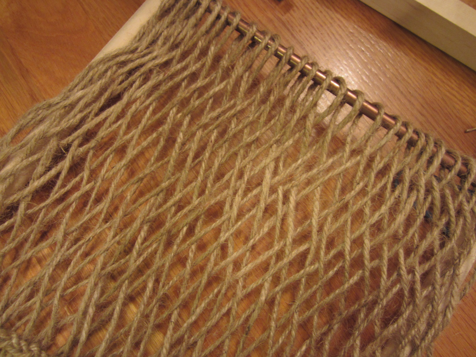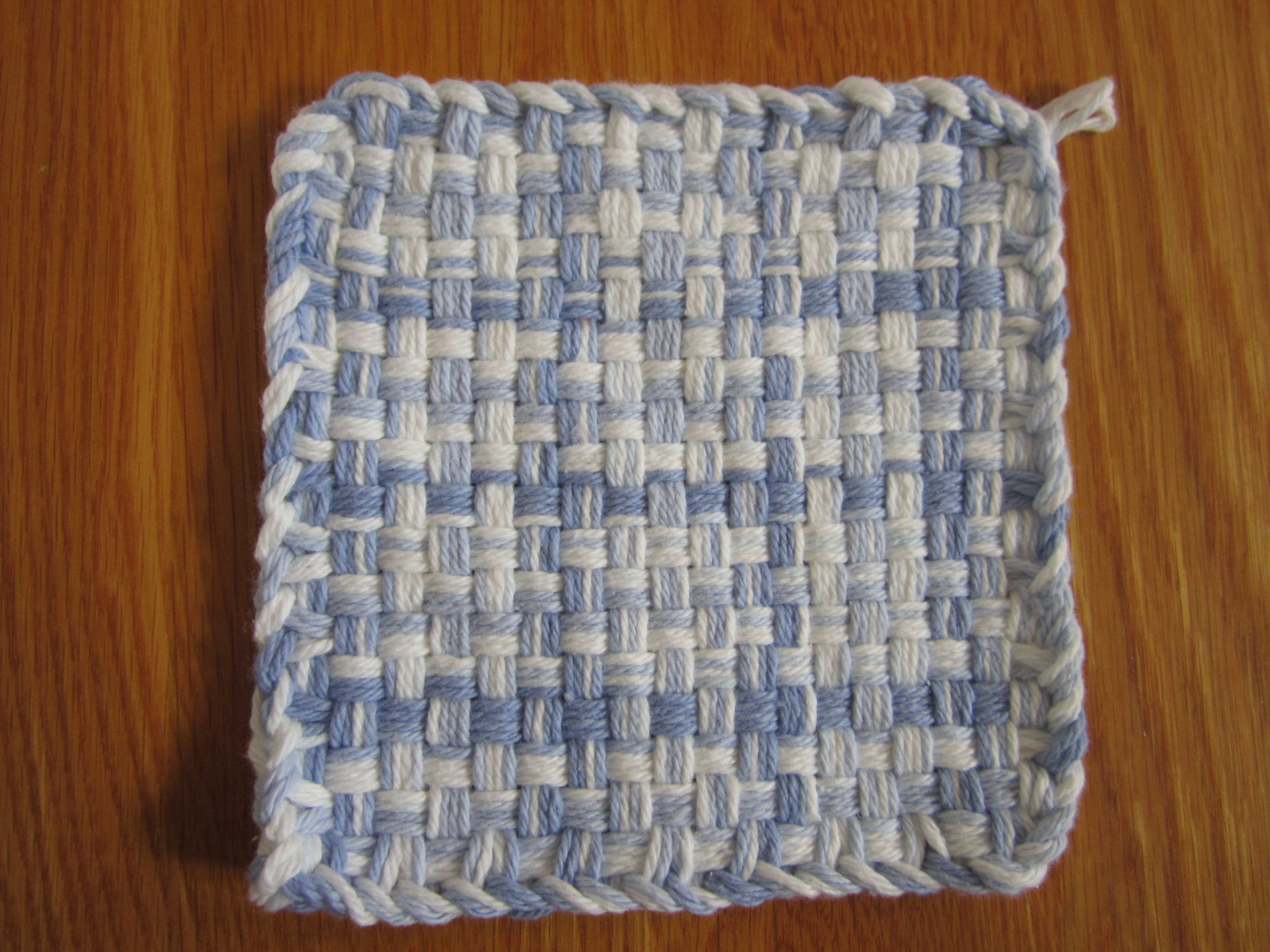 糸を交互に入れ替えて編んでゆくと言う感じかな。